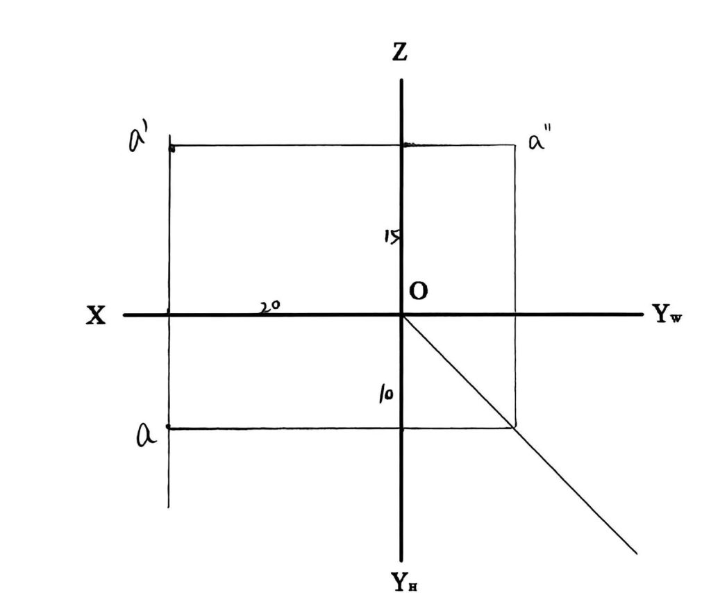 1、已知点A的坐标为(25,10,15),请绘制点A的三面投影(请保留绘图线)。(20分)