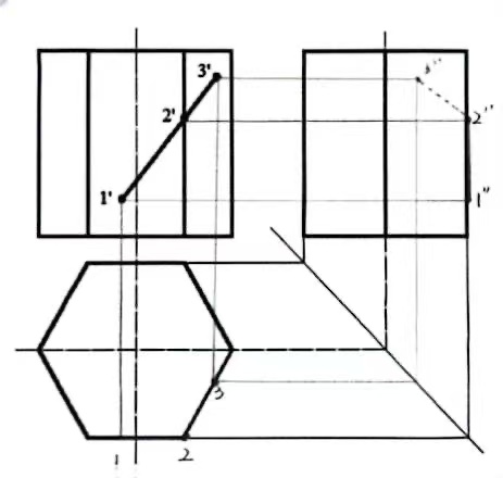 4、补全棱柱表面上线的三面投影(请保留作图线)。(30分)