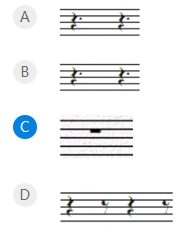 1、在6/8拍子中,全小节休止记写正确的是()。