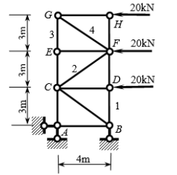 试用截面法求出图示桁架中指定杆件(1、2、3、4杆)的内力。