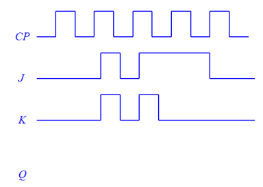 已知下降沿JK触发器输入信号如图所示,输出初始值为0。画出输出信号Q的波形图。