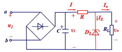 如图所示的稳压管稳压电路;u2不变,RL增大时,分析电路稳压过程。